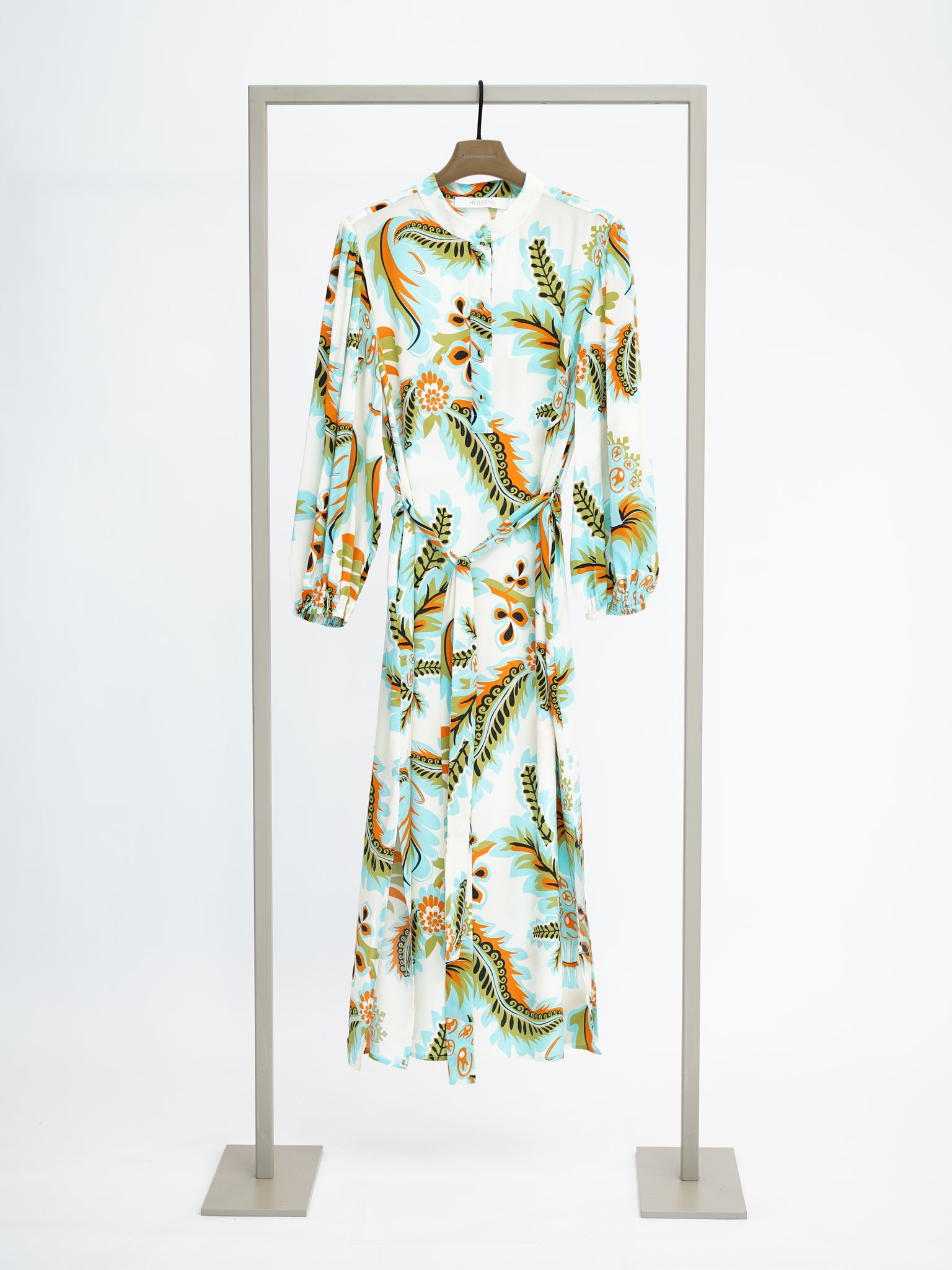 CREAM FLORAL PRINT DRESS WITH SLITS AND BELT
