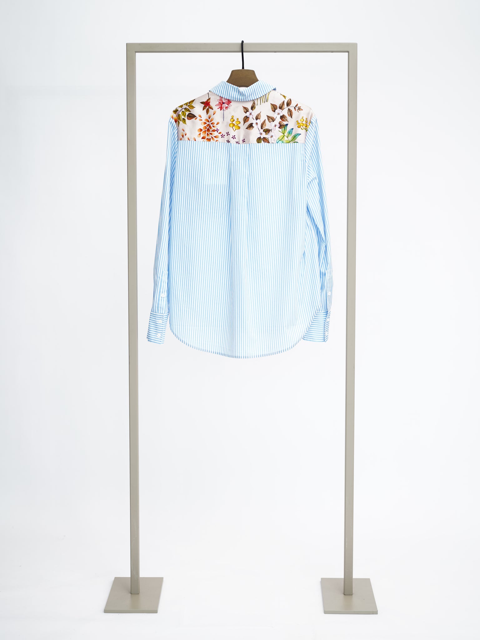 STRIPE SHIRT WITH FLORAL SATIN DETAIL IN BLU/WHITE