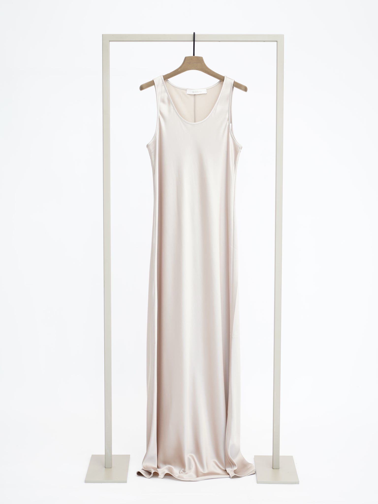 SILK SLEEVELESS MAXI DRESS WITH SPILT IN BEIGE