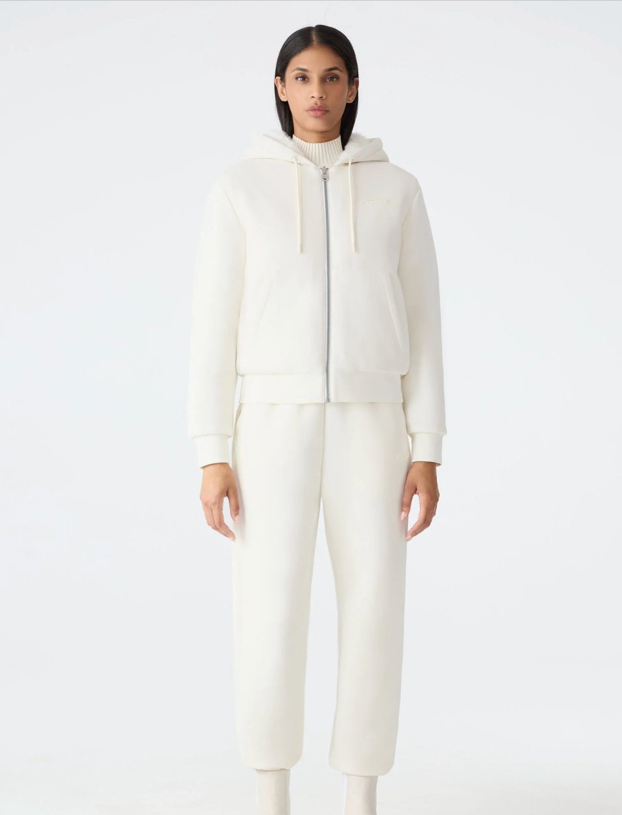 - "MACKAGE" branded drawcord at hood