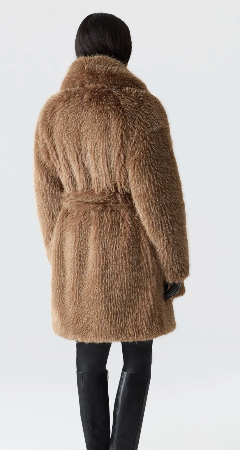 - Faux fur coat crafted from recycled materials