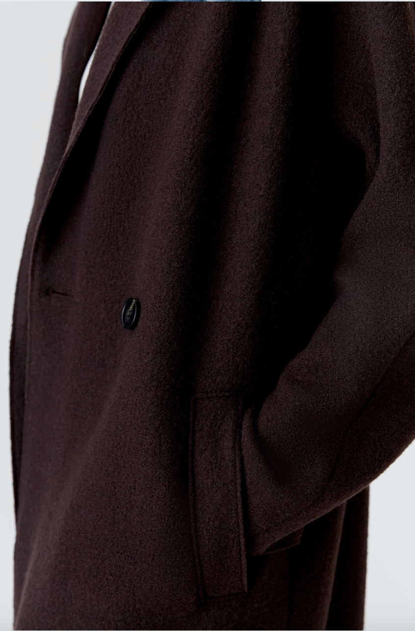 - Double-breasted coat with high-quality horn-look buttons