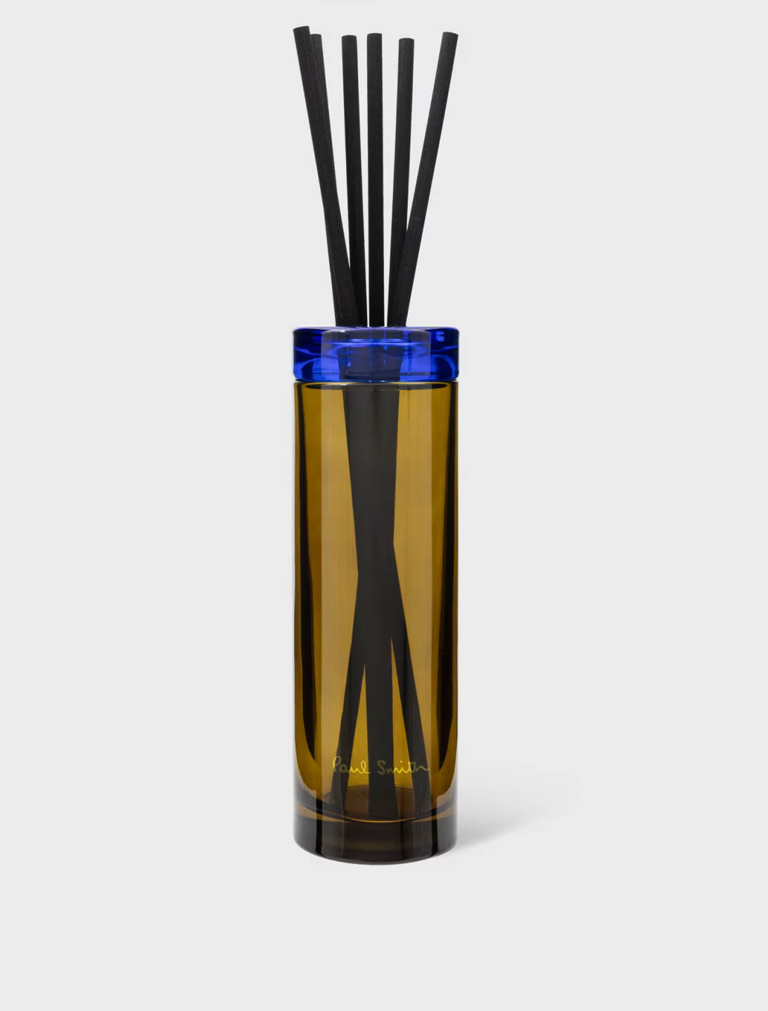 A smoky, wintery, and downright cosy scent, our new Storyteller candles and diffusers – the latest additions to Paul Smith’s home fragrance line up – evoke some very special memories for Paul. Blended with premium and alcohol-free ingredients, this diffuser is formulated to ensure exceptional scent diffusion. The oil is housed in a tinted glass vessel complete with a contrasting collar, an expression of Paul’s fondness for colour and its endless combinations. When in use, you’ll notice it catches the light beautifully and when finished, it can be reused again and again with fresh reeds or even as a stem vase for flowers.