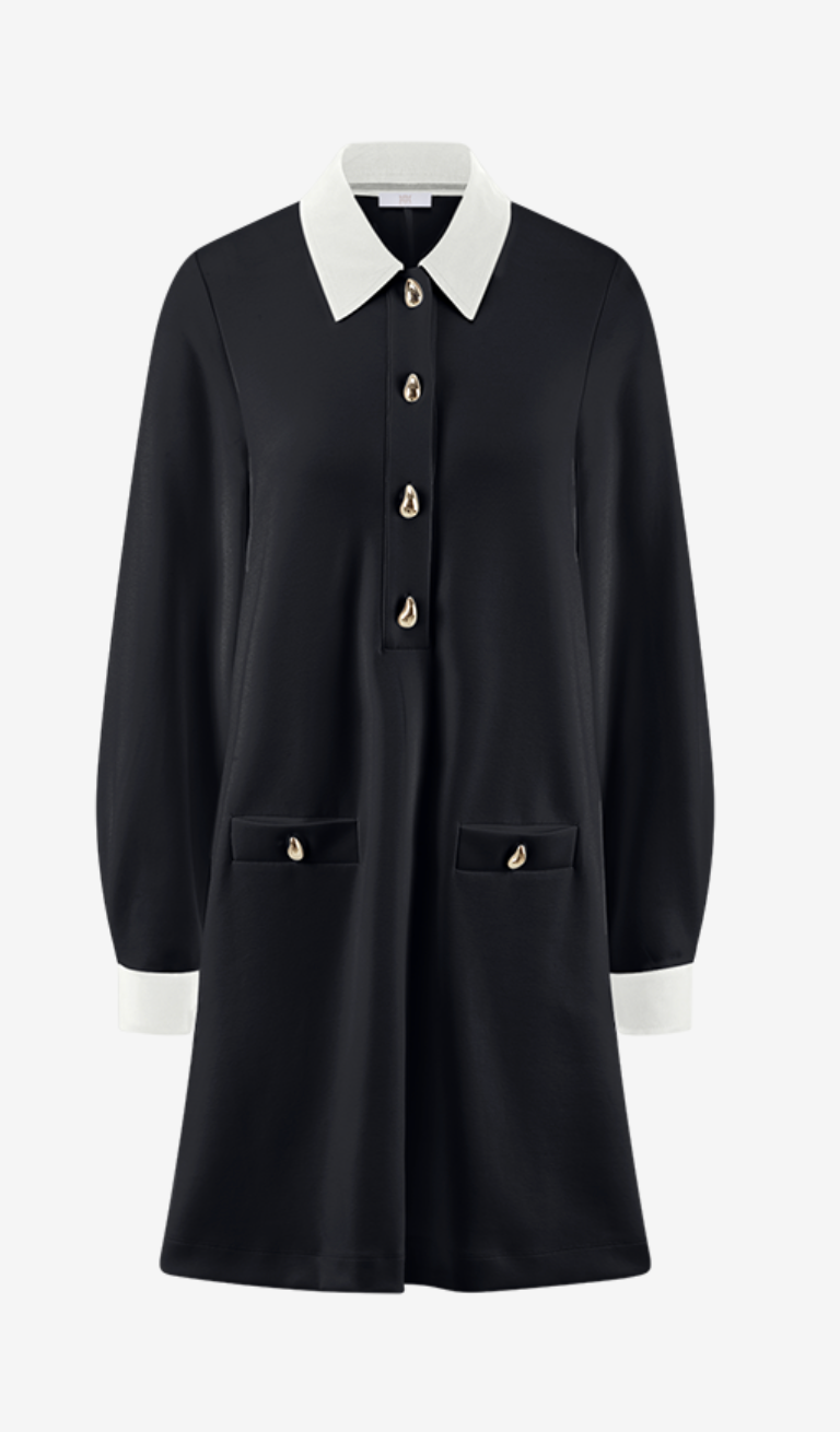 This dress with a shirt collar by RIANI combines the crisp lines of a shirt with the feminine ease of a dress. The structured collar, well-tailored design, and premium craftsmanship make it a versatile all-rounder – perfect for the office, a city look, or elegant casual moments. Depending on the styling, it can appear cool, classic, or feminine. A stylish must-have for RIANISTAs who wear fashion with confidence.