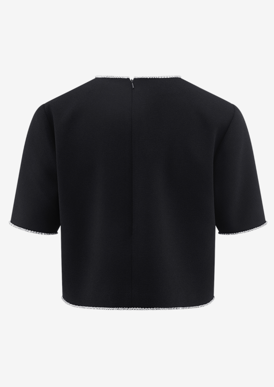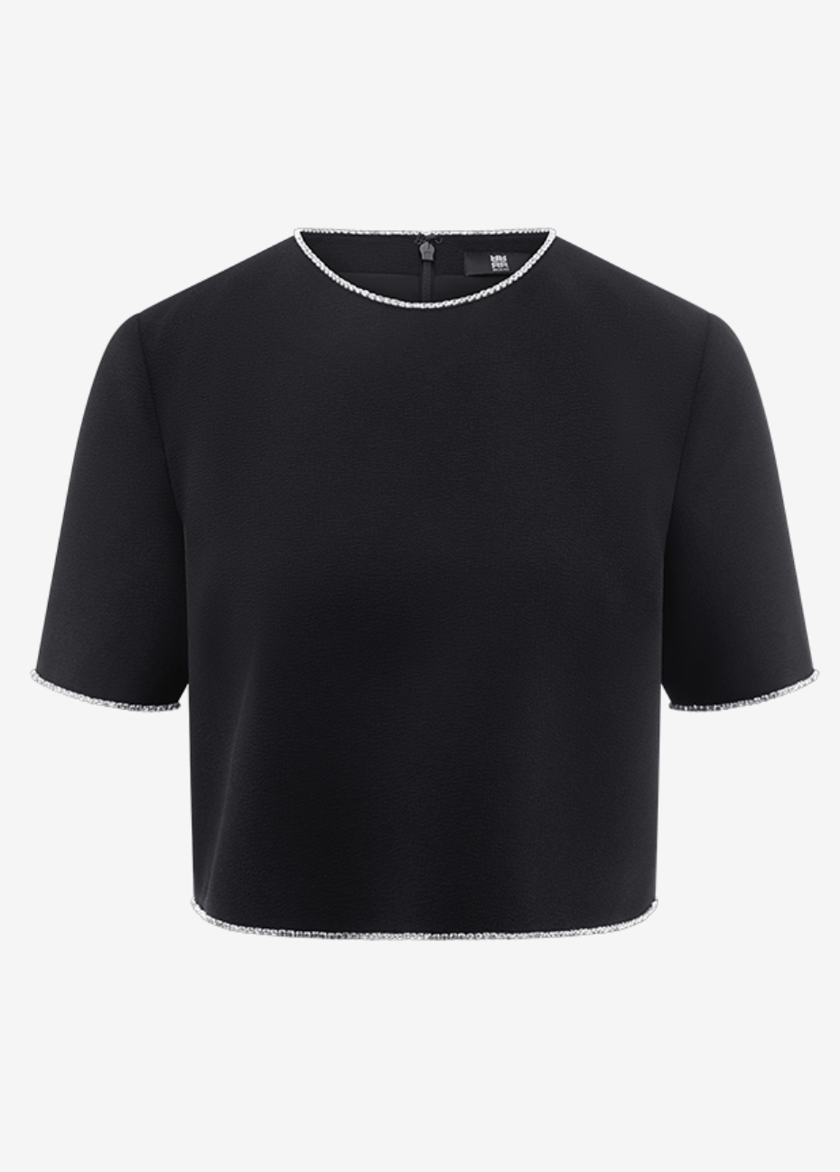 Sparkly moments! The Cropped Rhinestone Shirt from RIANI adds a sparkling twist to any outfit. Rhinestone details on a refined fabric create glamorous accents with a lightweight, comfortable feel – an it-piece that stands out. Pair with high-waist trousers, skirts, or under blazers – a must-have for RIANISTAs who love stylish highlights and fashion with glamour.