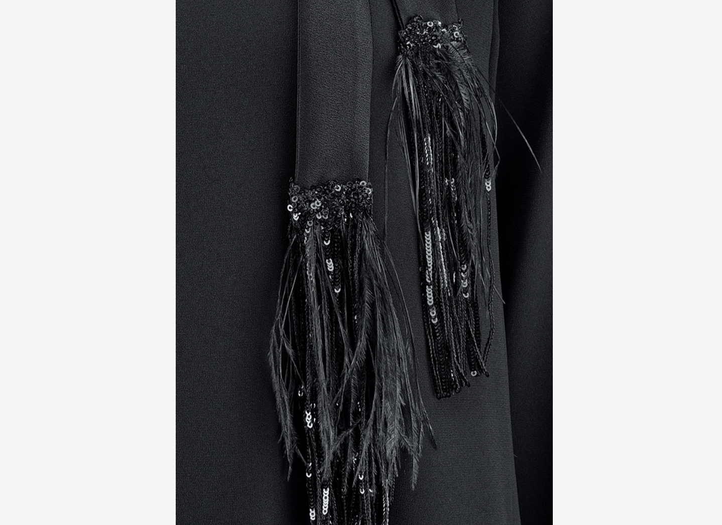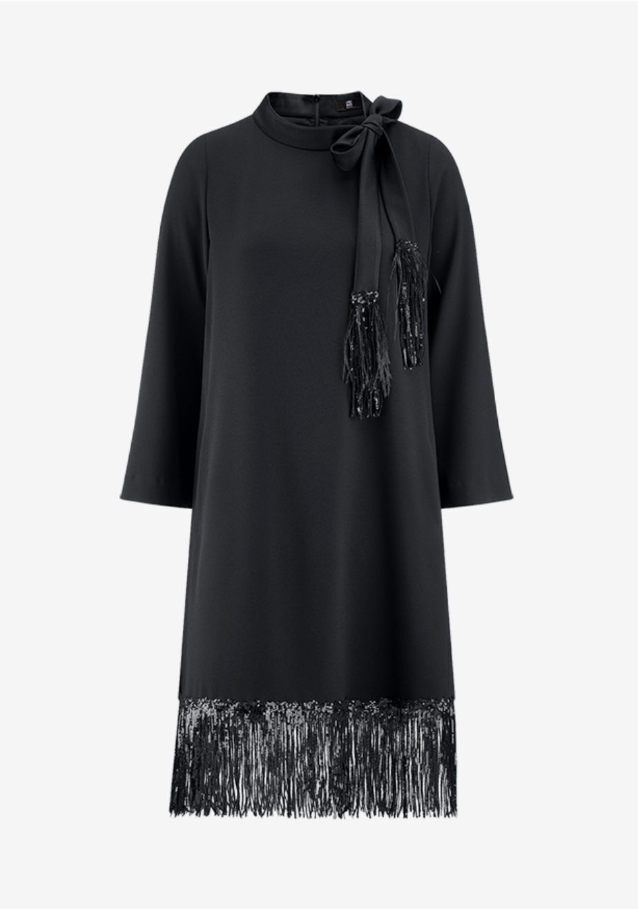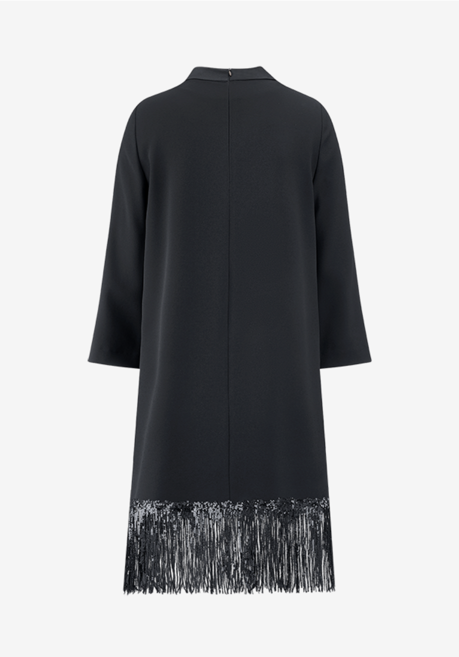 636040 L/S DRESS WITH SEQUIN/FEATHER DETAIL BLACK