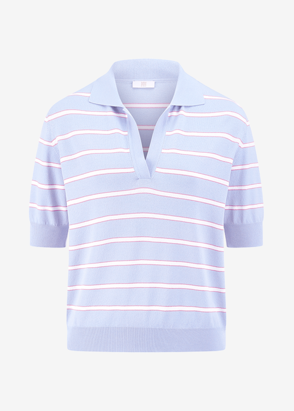 Light and modern – the fine-knit polo from RIANI combines timeless elegance with urban comfort. The delicate, softly flowing knit offers a pleasant, lightweight feel, while the classic polo collar and precisely crafted button placket add a stylish, feminine touch. The clean-cut fit highlights the high-quality craftsmanship and allows for versatile styling. Whether worn casually with jeans, elegantly under a blazer at the office, or relaxed with a skirt and sneakers – this piece is a flexible companion for every moment. A versatile design that blends effortlessly into any wardrobe.