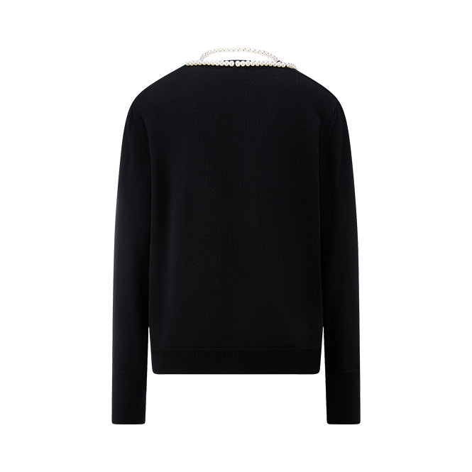 WOOL SWEATER WITH PEARL DETAIL BLACK