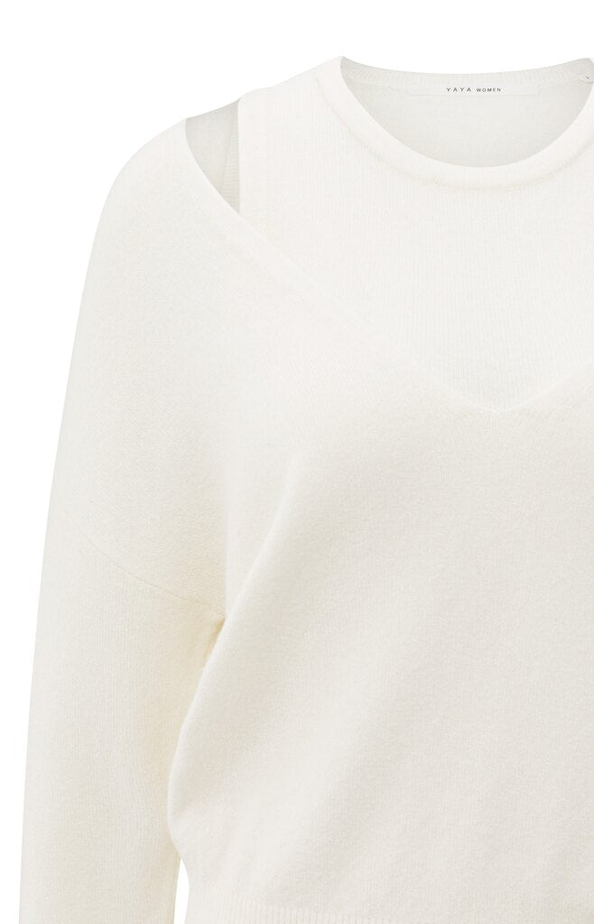This soft knitted sweater features a deep V-neck and comes with a matching top that can also be worn separately. Designed with long sleeves and a fitted silhouette for a feminine look. Finished with wide ribbed cuffs and hem for added structure. A versatile layered set that adds a modern touch to your casual wardrobe.