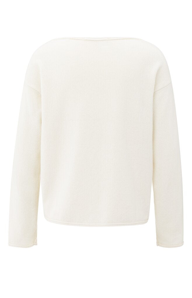 This finely knitted sweater features an elegant boat neckline, long sleeves, and a loose fit. The refined decorative seams along the sleeves add a subtle, stylish accent. Made from a soft and comfortable fabric, perfect for an elegant look.